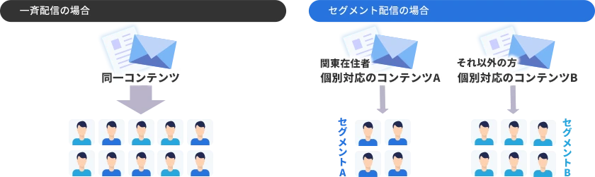 登録情報(名前・地域・属性など)をもとにした条件抽出配信が可能